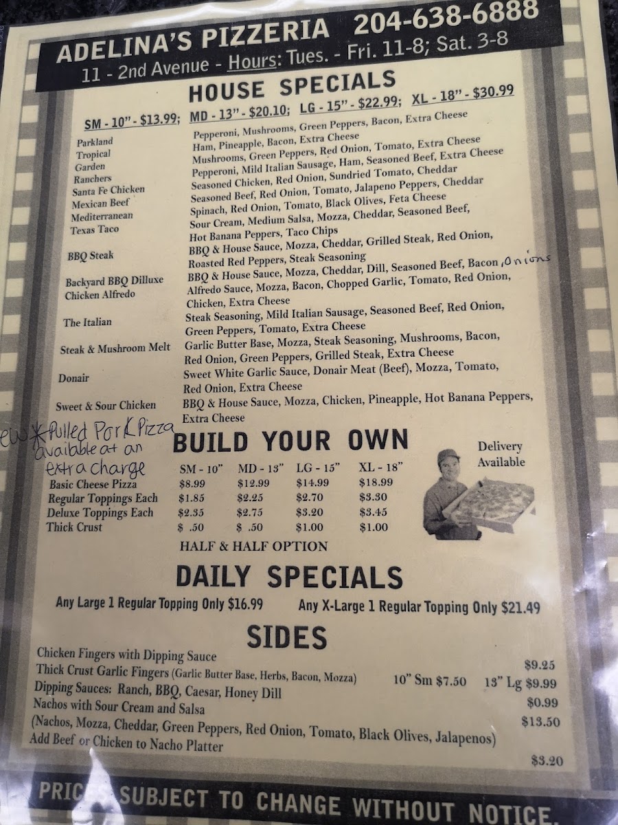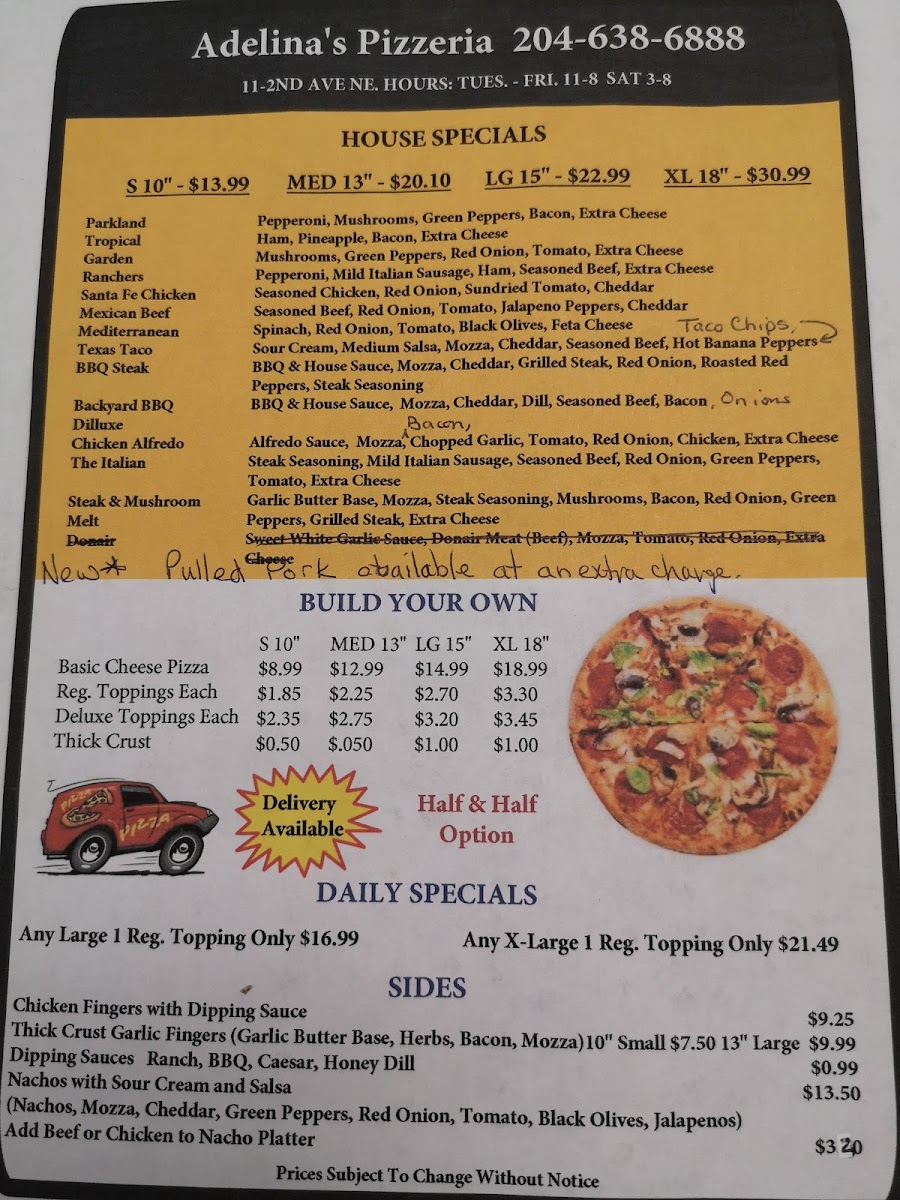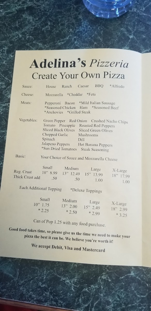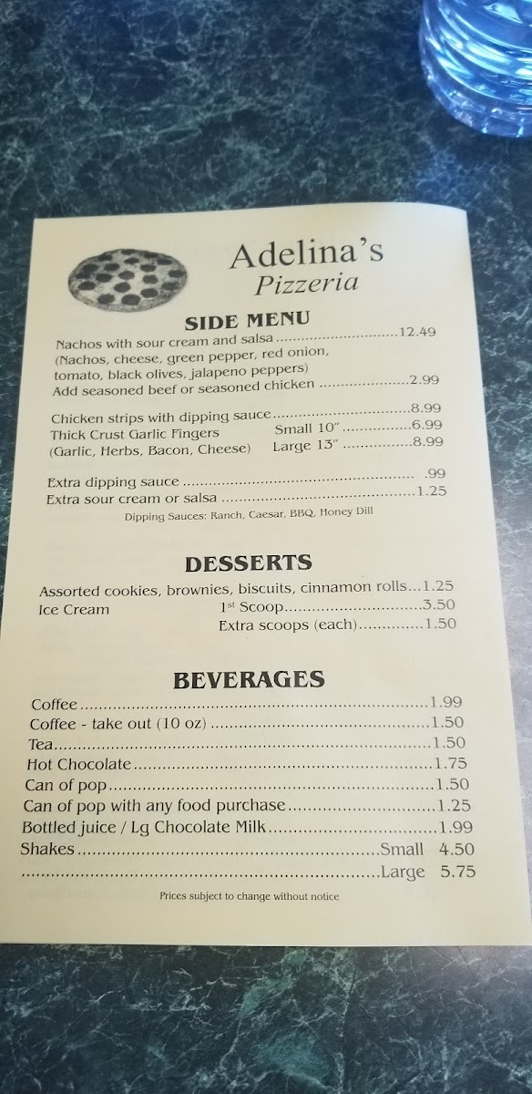 Adelina’s Pizzeria offers a menu that combines classic Italian comfort with casual, approachable dining. The selection centers around a variety of pizzas crafted with care, served alongside hearty sides and flavorful dishes that suit relaxed lunches, family dinners, or easy evenings out.